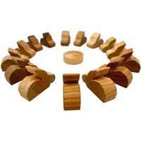 Geschmackvolle Osterdeko aus Massivholz, handgefertigt Putzige Hasen, bestehend aus 15 Holztieren, dazu ein Trog aus dem die Nager fressen können. Jede einzelne Holzfigur liegt dank natürlicher Haptik angenehm in den Händen. Die Osterdeko wurde handgefertigt und mit Pflanzenöl behandelt. Die natürliche Oberflächenstruktur bleibt so erhalten und die Häschen fügen sich in jede Osterdekoration ein. Das Holz stammt aus heimischen Wäldern.Nach dem Osterfest können Kinder ab 3 Jahren mit den Holztieren spielen. Hasen und Trog wurden sorgfältig verarbeitet und geschliffen, sind standfest und dank Massivholz, robust und widerstandsfähig. Streng schadstoffgeprüft, made in Germany. Hasen mit Trogaus geöltem Massivholz, 16-teilig Maße 3,8x 2,5 cm Made in Germany, Handarbeit Ansprechende Osterdeko oder Holzspielzeug für Kinder ab 3 Jahren Robust, widerstandsfähig Warnhinweis Achtung! Nicht geeignet für Kinder unter drei Jahren. Verschluckbare Kleinteile, Erstickungsgefahr.