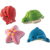 4 Meerestiere, die mit in die Badewanne kommen? Großartig! Plantoys Badewannenspielzeug zum Planschen, Blubbern, Befüllen und Quatschmachen. Genau das Richtige für alle kleinen Wasserratten und ebenso für Kinder, die beim Baden ein wenig Ablenkung benötigen. 4 Tiere aus recyceltem Kautschukholz. das Holz stammt aus nachhaltiger Forstwirtschaft. Badetiere mit jeweils 2 Luftlöchern. Streng schadstoffgeprüft, lösungsmittelfreie Farben.   4-teiliges Badespielzeug aus recyceltem Kautschukholz, bunt lackiert (lösungsmittelfrei) Mit jeweils 2 Luftlöchern Maße 7,1 x 6,8 x 4,2 cm Holz aus nachhaltiger Forstwirtschaft Zum Planschen, Befüllen, Blubbern und mehr Warnhinweis Achtung! Nicht geeignet für Kinder unter 1 Jahr. Verletzungsgefahr.
