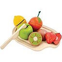 Kaufladenzubehör aus Holz für Kinder ab 18 Monaten Sinnvolle Ergänzung für die Spielküche aus recyceltem Kautschukholz. Die Obsthälften werden mit Klett zusammengehalten und können, ganz profesionell, mit dem Holzmesser geschnitten werden. Hochwertig gefertigt, robust und langlebig. Bunt lackiert (lösungsmittelfrei). Optimal für Rollenspiele. Als Unterlage dient ein stabiles, leicht geschwunges Brett, auf dem das Spielzeug geschnitten und angerichtet werden kann. Umweltfreundlich und sozial fair hergestellt. Streng schadstoffgeprüft. 7-teiliges Set. 7-teiliges Kinderküche Zubehör aus recyceltem Kautschukholz, bunt lackiert (lösungsmittelfrei) Umweltfreundlich und sozial fair hergestellt Obst mit Klettverbindungen, trennbar mit mitgeliefertem Holzmesser Mit Tablett, Messer, Apfel, Zitrone, Orange,Kiwi, Erdbeere Für Kinder ab 18 Monaten Warnhinweis Achtung! Nicht geeignet für Kinder unter 18 Monaten. Verletzungsgefahr.