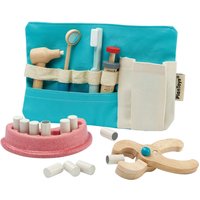 Liebevoll designtes und hochwertig gefertigtes Kinderspielzeug Die PlanToys Tasche aus Baumwolle wurde mit allerlei Zahnarzt Utensilien (Kautschukholz) bestückt. Kinder können mit Tasche und demdazugehörigem Holzspielzeug einen Zahnarztbesuch in ihren Rollenspielen nachspielen. Kleine Dentisten nehmen am Gebiß den Zahnstatus auf. "Oh, ist da ein Zahn mit Loch?" Bei komplizierteren Zahnbehandlungen können die Kinder eine Betäubungsspritze setzen und den betroffenen Zahn mit Zange und Co behandeln. Ist auch der letzte Patient behandelt worden, wird die praktische Baumwolltasche mit einem Band geschlossen. Für Kinder ab 3 Jahren.   Zahnarzt Set mit Tasche aus Kautschukholz und Baumwolle Mit Spiegel, Zange, Gebiß mit Zähnen und vielem mehr Ideal für phantasievolle Rollenspiele Umweltfreundlich und sozial fair hergestellt Tasche waschbar Warnhinweis Achtung! Nicht geeignet für Kinder unter 3 Jahren. Verletzungsgefahr.