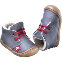 Laufen lernen mit den Lauflernschuhen „Juan“ Die ersten Schritte des Babys sind immer mit großer Aufregung verbunden. Nun gilt es, für den mobilen Nachwuchs Kinderschuhe zu finden, die Halt schenken, die kleinen Füße atmen lassen, eine flexible Sohle haben und aus besten Materialien bestehen. Der Kinderschuh „Juan“ von Pololo besteht aus pflanzlich gegerbtem Leder, trägt sich weich und leicht und schütztund stütztden Fuß und das Fußgelenk. Ein kuscheliges Bio-Schurwollfutter (kbT) hält die Füßchen schön warm. Aus pflanzlich gegerbtem, IVN-zertifiziertemRindsleder, chromfrei, gefettet und gewachst Warm gefüttert mit atmungsaktiver, feuchtigkeitsregulierender Bio-Schafschurwolle (kbT) ECARF zertifiziertes Naturleder Mit Zehenschutz Lederschuhe made in Spain Pololo Bio-Schuhe in bester Qualität Das Laufen lernen ist eine besondere Phase in der Entwicklung des Kindes. Die ersten Schuhe sollten gewisse Kriterien erfüllen, damit der kleine Läufer sicher und mit gesundem Schuhwerk auf den Beinen ist. Der Lederschuh „Juan“ von Pololo besteht aus pflanzlich gegerbtem, chromfreien Leder, das gewachst und gefettet wurde. Das atmungsaktive Bio-Leder legt sich sanft um den Fuß und schenkt, dank Material und Schnitt, verlässlichen Halt bei Schritt und Tritt. Dank des Schnürsystems können die Kinderschuhe, je nach Bedarf, in der Weite verstellt werden.Die in Spanien gefertigtenLauflernschuhe sind besonders hautverträglich und unterlaufen strengen Qualitätsprüfungen und Schadstoffkontrollen. Viele durchdachte Details DieKinder Schuhevon Pololo wurden an der Fußspitze mit einem Zehenschutz versehen. Das schont die empfindliche Fußpartie und das chromfreie Bio-Leder. Die rutschfeste Laufsohle passt sich dem Fuß flexibel an, bei jedem Schritt können die Kleinen ihren Fuß optimal abrollen. Innen wurden die Leder Kinderschuhe mit Schafschurwolle gefüttert. Das natürliche Material wirkt temperatur- und feuchtigkeitsausgleichend, so dass im Lauflernschuh stets ein optimales Trageklima herrscht und die Füßchen nicht schwitzen. Die Wollsohle ist komplett herausnehmbar.Optisch sind die unifarbenen Lederschuhe für Kinder ein Gewinn für jedes Outfit. Die richtige Größe Um die geeignete Schuhgröße für Ihren Nachwuchs zu ermitteln, messen Sie die Füße vom großen Zeh bis zur Ferse. Erfahrungsgemäß passen die Schuhe am besten, wenn Sie die Fußlänge plus ca. 1 bis 1,5 cm zugrunde legen. In unserer Größentabelle (siehe Reiter oben) finden Sie die passende Schuhgröße. Tipp: Zum Ausmessen zeichnen Sie die Fußumrisse (mit Strümpfen) auf ein Blatt Papier. Das Maß des größeren Fußes nehmen Sie für die Bestellung. Details zum Produkt Rutschfeste, flexible Sohle 2 Paar unterschiedlich farbige Schnürsenkel Herausnehmbare Innensohle Sehr hautverträglich Sohle aus thermoplastischem Kautschuk (TPR) - geringer Abrieb, rutschhemmend, hervorragende Tritteigenschaften Pflegehinweis: Zur Pflege der Bio-Schuhe empfehlen wir unser Tapir Lederbalsam.
