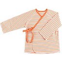 Praktisches Wickelshirt für Babys Babys mögen es mitunter überhaupt nicht, wenn ihnen Kleidung über den Kopf gezogen wird. Abhilfe schafft dieses Wickelshirt aus Bio-Baumwollemit praktischen Bindebändern. Das Baby wird beim Anziehen einfach in das Babyshirt gelegt, die Seiten übereinander geschlagen und die GOTS-zertifizierte Babykleidung mit einer Schleife geschlossen. Fertig! Babyshirt aus 97% Bio-Baumwolle (kbA), 3% Elasthan GOTS-zertifiziert Mit praktischer Wickel-Funktion Für ein leichteres Anziehen Atmungsaktive Naturfasern