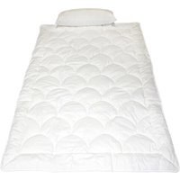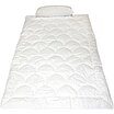 Optimales Schlafset für Personen mit empfindlicher und zu allergieneigender Haut Mit diesem Schlafset aus rein natürlichen Fasern bieten wir all denjenigen, die zu empfindlicher und zu allergieneigender Haut tendieren eine hervorragende Alternative. Die GanzjahresBettdecke mit der Füllung aus leichter Cellulosefaser ist besonders pflegeleicht und auch bei Problemen mit Hausstaubmilben die ideale Bettausstattung. Passend hierzu erhalten die ein komfortables Kopfkissen mit einer Füllung aus PES Faserbällchen. Diese Faser wird ebenfalls selbst von Neurodermitis- oder Psoriasispatienten als hervorragend hautverträglich empfunden. Ganzjahres Bettdecke aus Cellulosefasern 135x200cm Kopfkissen mit einer Füllung aus PES-Faserbällchen 40x80cm Inletts aus reiner Bio-Baumwolle (kbA) Für Personen mit empfindlicher und zu allergieneigender Haut geeignet Hergestellt in Deutschland Bettdecke aus Cellulosefasern und Bio-Baumwolle (kbA) Mit dieser wunderbaren Bettdecke mit der Füllung aus natürlicher und besonders hautfreundlicher Cellulosefaser sind insbesondere Personen mit besonders empfindlicher Haut gut beraten. Die leichte Bettdecke ist in der Lage große Mengen an Feuchtigkeit aufzunehmen und diese besonders schnell nach außen wieder an die Umgebung abzugeben. Dies sorgt für ein angenehmes und trockenes Schlafklima. Aufgrund dieser hervorragenden Eigenschaften ist diese Bettdecke aus Cellulosefasern (Lyocell) besonders resistent gegenüber Bakterien und Milbenbefall. Unangenehme Gerüche sowie Schimmel haben aufgrund der fehlenden Feuchtigkeit innerhalb der Bettdecke ebenfalls kaum eine Chance. Diese wunderbar hautverträgliche Bettdecke verfügt über eine Füllung aus reinen Lyocellfasern, die weder mit Pestiziden noch mit Agrarchemie belastet sind. Der feine Bezug der Bettdecke besteht aus reiner Bio-Baumwolle, die wir aus kontrolliert biologische Anbau (kbA) beziehen. Stützenden Kopfkissen aus PES Faserbällchen und Bio-Baumwolle (kbA) Passend zur Bettdecke erhalten Sie dieses Kopfkissen, das speziell für Personen mit empfindlicher Haut und Allergieneigung entwickelt wurde. Der Kern besteht aus einer Füllung mit PES-Faserbällchen, die für eine sehr komfortable und dauerhafte Stützfunktion sorgen. Die umschließende Kissenhülle besteht aus einer besonders hautfreundlichen Cellulosefaser mit hoher Feuchtigkeitsaufnahmekapazität. Dieser ist zusätzlich versteppt mit einem Rundumbezug aus 100% reiner Bio-Baumwolle (kbA). Das Kissen ist an der Seite mit einem Reißverschluss zum Öffnen und Schließen versehen. Maße 40x80cm. Pflegehinweis Bitten waschen Sie das Schlafset maximal bei 60°C im Schonwaschgang Ihrer Waschmaschine. Wählen Sie hierfür die niedrigste Umdrehungszahl. Die Bettwaren für Ihre Liebsten sollte nicht geschleudert werden und nach dem Waschvorgang einfach liegendlufttrocknen. Details zum Schlafset 2-teiliges Schlafset aus Bettdecke und Kopfkissen Für Personen mit empfindlicher Haut und Allergieneigung Ideal bei Problemen mit Hausstaubmilben Sehr natürlich und komfortabel Waschbar bis 60°C im Schonwaschgang bei niedriger Umdrehungszahl Kissenfüllung: PES Faserbällchen (530g) Wärmeverhalten*** Feuchtigkeitsausgleich**** Wohlfühlfaktor****