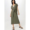 hessnatur Damen Jersey Kleid Midi Relaxed aus Leinen - grün - Größe M