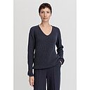 Die klare Form und der pure Look zeichnen diesen hochwertigen, fein gerippten, weichen Strickpullover mit V-Ausschnitt aus.