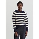 hessnatur Damen Pullover Streifen Relaxed aus Bio-Baumwolle und weicher Schurwolle - blau - Größe XS