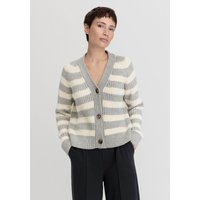 hessnatur Damen Strickjacke Streifen Relaxed aus Bio-Merinowolle mit Bio-Baumwolle - grau - Größe M