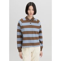 hessnatur Damen Sweatpolo Streifen Relaxed aus Bio-Baumwolle - braun - Größe XL