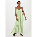 hessnatur Damen Trägerkleid Maxi Relaxed aus TENCEL™ Lyocell mit Leinen - grün - Größe 42