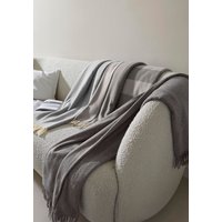 Ein kuscheliger Eyecatcher: unsere luxuriöse Wolldecke aus einem besonders soften Wohlfühl-Kaschmir-Mix. Die sinnliche Weichheit auf der Haut ist perfekt zum Entspannen und die Zeit anhalten. Für die kuschelig-weichen Momente des Lebens! Dekorativ die langen Fransen. Kaschmir ist besonders zart, anschmiegsam und wertvoll. Wie ein Hauch umhüllt es die Haut und wärmt. Die softe Merinowolle wirkt angenehm ausgleichend auf das Körperklima, ist selbstreinigend, durch Lüften regenerierend und damit besonders nachhaltig, weil wassersparsam. Im Duo vereint ein echter Naturschatz!