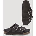 hessnatur Hausschuhe Pantolette Teddy aus chromfrei gegerbtem Nubuk-Leder - schwarz - Größe 40