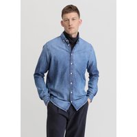 hessnatur Herren Jeans Hemd Regular aus Bio-Denim - blau - Größe L (43/44)