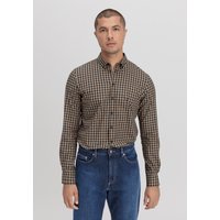 hessnatur Herren Vichy Hemd Regular aus Bio-Baumwolle - braun - Größe S (39/40)