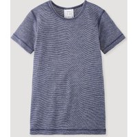 hessnatur Kinder Kurzarmshirt aus Bio-Baumwolle mit Bio-Schurwolle und Seide - blau - Größe 122/128