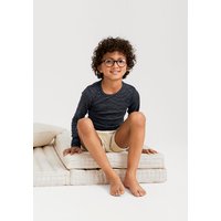 Wollwarme Ringel, die es in sich haben: Denn durch den Seidenanteil ist das anschmiegsame Langarmshirt sehr angenehm auf der Haut. Als Funktionswäsche, aber auch einfach als cooles Shirt. Nicht nur praktisch, sondern auch sehr angenehm im Tragegefühl: Dieser natürlich wärmende, softe Materialmix vereint die wunderbaren Eigenschaften der beiden Naturfasern in sich. Für wohlige Wärme und einen optimalen Temperatur- und Feuchtigkeitshaushalt. Der hohe Seidenanteil mit hautberuhigendem Charakter sorgt für ein weiches Gefühl auf der Haut. Auch für empfindliche Kinder bestens geeignet.