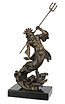 Detailreiche Bronzeskulptur Deko Skulptur Poseidon mit Dreizack für Innen- und Außenbereiche. Poseidon ist laut griechischer Mythologie der Gott des Meeres und Bruder von Zeus. , Die hochwertige Bronzeskulptur eignet sich für jeden Liebhaber der griechischen Mythologie und ist perfekt für jedes stilsichere Büro oder zu Hause. Maße ca.: , Höhe (der Poseidon Figur ohne Stab) 30 cm x Breite 17 cm x Tiefe 12 cm. , Gewicht ca.:  ,3,5 kg. Material:  ,aus hochwertiger Bronze im Bronzegussverfahren hergestellt. Sockel aus schwarzem Marmor. Da es sich um ein reines handwerkliches Produkt handelt, kann Farbton und Patina von den Fotos etwas abweichen.