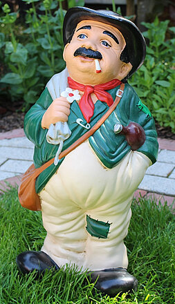 Produkt: Dekorationsfigur Landstreicher mit Sack in der Hand und Zigarette im Mund stehend - Themenfigur Dekofigur für Wohnbereiche und Gärten. Maße ca.: Höhe 53 cm. Gewicht ca.: 2,5 kg. Material: Qualitätskunstharz - frostsicher und witterungsbeständig. Herstellung: in Doppelgußverfahren mit handwerklichem Finishing. Das Produkt wird im EU-Land angefertigt.