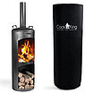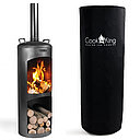 Gartenkamin "Faro" Gartenofen zum Heizen und Grillen Terrassenofen aus Naturstahl Kamin Ofen + Gartenkaminbezug wasserfeste Abdeckung Gartenkamin Maße ca.: Höhe 158 cm x Durchmesser 40 cm x Dicke der Stahlstangen 1,5 mm x Gewicht 18,5 kg Abdeckung Maße ca.:  ,40x110 cm, Grammatur 390 g/ m2 Material: Gartenkamin aus ,hochwertiger Naturstahl. Abdeckung aus Polyester + PVC-Unterlage. Eigenschaften des Gartenkaminbezugs:  ,wasserdicht und frostbeständig , Hinweis: , Falls Sie das rostige Aussehen von Naturstahl nicht mögen, bitte schützen Sie den Gartenkamin vor Wasser und Feuchtigkeit. Der Rost beeinträchtigt nicht die Funktionsqualität. - Ideal hierfür die passende wasserfeste Abedeckung. HANDGEFERTIGTES PRODUKT, HERGESTELLT IN EUROPA Dank unserem Kamin schaffen Sie in Ihrem Garten oder Terrasse eine bezaubernde Stimmung. Durch seine massive Konstruktion aus dickem Blech erreicht der Kamin schnell hohe Temperaturen und gibt gleichzeitig seine Wärme an die Umgebung ab. Der Rand des Kamins wurde aus einem dicken Stahlblech mit Laserstrahlung geschnitten. Wenn das Feuer brennt, kommt aus dem Kamin ein einmaliger Feuerschein hervor. Das Licht und die Wärme des Kamins stellen das Zentrum des Gartens dar und sorgen für eine unwiederholbare Stimmung. , Die ganze Konstruktion ist sehr fest und stabil. Alle Elemente sind aneinander angeschweißt worden, weshalb das Produkt außergewöhnlich stabil ist. ,Der Kamin ist mit einem Schornstein versehen, durch den Rauchgase abgeleitet werden. Der präsentierte Kamin hat auch ein Fach, in dem viel Holz aufbewahrt werden kann. Zusätzlich schützt das Fach den Boden vor hoher Temperatur. ,Die am Kamin angeschweißten Griffe machen das Tragen des Produkts viel einfacher.