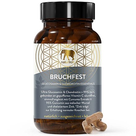 Ultra Glucosamin & Chondroitin > 99% rein, gebunden an gepuffertes Vitamin C säurefrei, sinnvoll ergänzt mit Curcuma Extrakt ≥ 95% Curcumin aus indischer Wurzel. Ohne jegliche Zusätze. Kapselhülle - 100% vegan Gluco-Chondro niveau-peak Herstellung in Deutschland. Jede* Bestellung pflanzt 1 Baum.