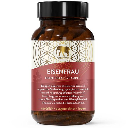 Doppelt dosiertes chelatiertes Eisen als organische Verbindung, synergistisch umhüllt von pH -neutral gepuffertem Vitamin C. Premium Qualität durch ausgewählte Erzeuger. Spezialkapseln - 100% vegan Bi-Eisen Impuls Matrix Herstellung in Deutschland. Jede* Bestellung pflanzt 1 Baum.
