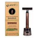 Für eine natürlich nachhaltige RasurDer pandoo plastikfreie Bambus Rasierhobel ermöglicht eine erstklassige und hautfreundliche Rasur, sowohl für Frauen als auch für Männer. Dank seines ergonomischen Griffs und des geschlossenen Kamms ist der Bambus Rasierhobel auch für Anfänger geeignet. Beschreibung Lieferumfang: Bambus Rasierhobel, Halterung, 10 Rasierklingen, E-Book Rasierhobel Guide Material: Rasierhobel: Bambus, Messing, ZinklegierungKlingen: EdelstahlHalterung: Aluminium Modell: Dünner Griff oder breiter Griff Größe(L x B x T): 11,5 cm x 4,3 cm x 2,5 cmDünner Griff Ø: 1 cmBreiter Griff Ø: 1,8 cm Gewicht: Dünner Griff: 72 gBreiter Griff: 86 g Entsorgung: Lade dir unser E-Book herunter, um mehr über die Entsorgung des Rasierhobels und der Klingen zu erfahren. Verpackung: 100% plastikfrei und biologisch abbaubar.Den Karton im Altpapiermüll entsorgen. Produziert in: Guangdong Provinz, China Zertifizierung: Unser Produzent ist BSCI-zertifiziert Anwendung: Lade dir unser E-Book herunter, um unsere Tipps und Erfahrungen über den Rasierhobel nachzulesen. Impact Bambus Rasierhobel, um die Verschmutzung der Meere zu vermeidenLaut eines Reports des WWF ist die Produktion von Kunststoffen seit 1950 um das Zweihundertfache gestiegen. Der größte Teil an Plastik wird für die Herstellung von Einwegprodukten und Verpackungen eingesetzt. Diese landen nach kurzer Nutzung auf dem Müll. Einwegrasierer gehören zu diesen Einwegprodukten: Sie werden nicht recycelt und belasten so unsere Umwelt und Meere. Bei richtiger Handhabung und Pflege wird der pandoo Rasierhobel dich dein Leben lang begleiten. Die Klingen aus Edelstahl sind ebenfalls plastikfrei und können recycelt werden. window.SHOGUN_IMAGE_ELEMENTS = window.SHOGUN_IMAGE_ELEMENTS || new Array(); window.SHOGUN_IMAGE_ELEMENTS.push({ hoverImage: '', uuid: 's-5b971d55-e445-4efa-8ff8-a2e997d5b3fc' }) window.SHOGUN_IMAGE_ELEMENTS = window.SHOGUN_IMAGE_ELEMENTS || new Array(); window.SHOGUN_IMAGE_ELEMENTS.push({ hoverImage: '', uuid: 's-81d94069-235c-444c-9699-aac9344fcc58' }) FAQ Wie viel kostet der Versand?Mehr über den Versand erfährst du auf unserer Hilfe Seite. Ich hatte bisher noch keinen Hobel. Wie kompliziert ist es, die Klinge zu wechseln?Die Klinge lässt sich einfach austauschen, indem man den Griff abdreht und den Deckel abnimmt. An dieser Stelle befinden sich zwei Stifte, die die Klinge fixieren. Die Klinge einfach einlegen, den Deckel aufsetzen und den Griff wieder darauf drehen. Hier sollte man darauf achten, die Klinge nicht zu zerbrechen und nie an der scharfen Kante festzuhalten. Ist der Rasierhobel auch für Männer geeignet?Ja, unsere Rasierhobel eignen sich sowohl für Frauen als auch für Männer! Ist dieser Rasierer auch für eine Rasur des ganzen Körpers geeignet?Ja, man kann mit ihm den ganzen Körper rasieren. Allerdings empfehlen wir es, sensible Bereiche wie den Kopf- oder Intimbereich erst mit etwas Übung selbst zu rasieren. Muss man bestimmte Klingen verwenden oder ist die Marke egal?Grundsätzlich sind alle Klingen einsetzbar. Die Maße sollten den folgenden entsprechen: 4,5 cm x 2,5 cm. Wenn du keine Ersatzklingen mehr hast, empfehlen wir dir unsere pandoo Klingen, die im 10er oder 100er-Pack erhältlich sind. Liegt der Rasierhobel gut in der Hand?Unser Bambus Rasierhobel liegt dank seines ergonomischen Griffs besonders gut in der Hand, um das Rasurerlebnis so einfach wie möglich zu machen. Ob breiter oder dünner Griff ist Geschmacksache Hat der Hobel einen geschlossenen oder einen offenen Kamm?Die pandoo Rasierhobel haben geschlossene Kämme, wodurch diese auch ideal für Anfänger sind! Braucht man eine spezielle Rasierseife?Nein, normale Seife und Wasser reichen schon aus! Für empfindliche Haut empfehlen wir eine Rasiercreme oder Rasierseife, um Hautirritationen zu vermeiden. In unserem E-Book findest du ein DIY-Rezept für ein selbstgemachtes Rasieröl! Kann man die Halterung auch einzeln bestellen?Leider ist die Halterung zur Aufbewahrung des Rasierhobels nur zusammen mit dem Rasierhobel und den Klingen erhältlich. Ist der Kopf schwenkbar?Nein, der Rasierhobel hat keinen schwenkbaren Kopf. Bewertungen