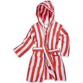 Kinder Bademantel mit Kapuze Bio-Baumwolle koralle-weiß Gr.98/104